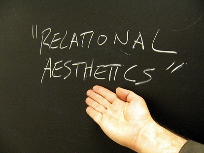 De igual modo, Rancière considera que las piezas relacionales defendidas por Bourriaud se presentan como “la realización anticipada de su efecto”, al presentar como la obra misma aquello que idealmente sería su objetivo final: momentos de colaboración y convivencia debido a un cambio en la manera en la que las personas se relacionan. Sus esfuerzos, no obstante, pueden quedar en la mera representación espectacular o incluso, convertirse en una especie de parodia de aquello que buscan conseguir.
