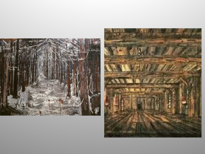 Many of Kiefer’s paintings focus on sites of German history and identity, such as this painting called Varus, the name of a Roman general, who was defeated by Germanic tribes in a historic battle in 9 AD. Many of his works recall the monumentality of Speer’s architecture or indeed one of the grandiose sets for one of the many Nazi ceremonies, as in this painting, Germany’s Spiritual heroes, in which he names Joseph Beuys along with Richard Wagner, whose belief in the redemptive power of art he shared. [79]