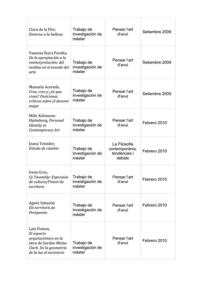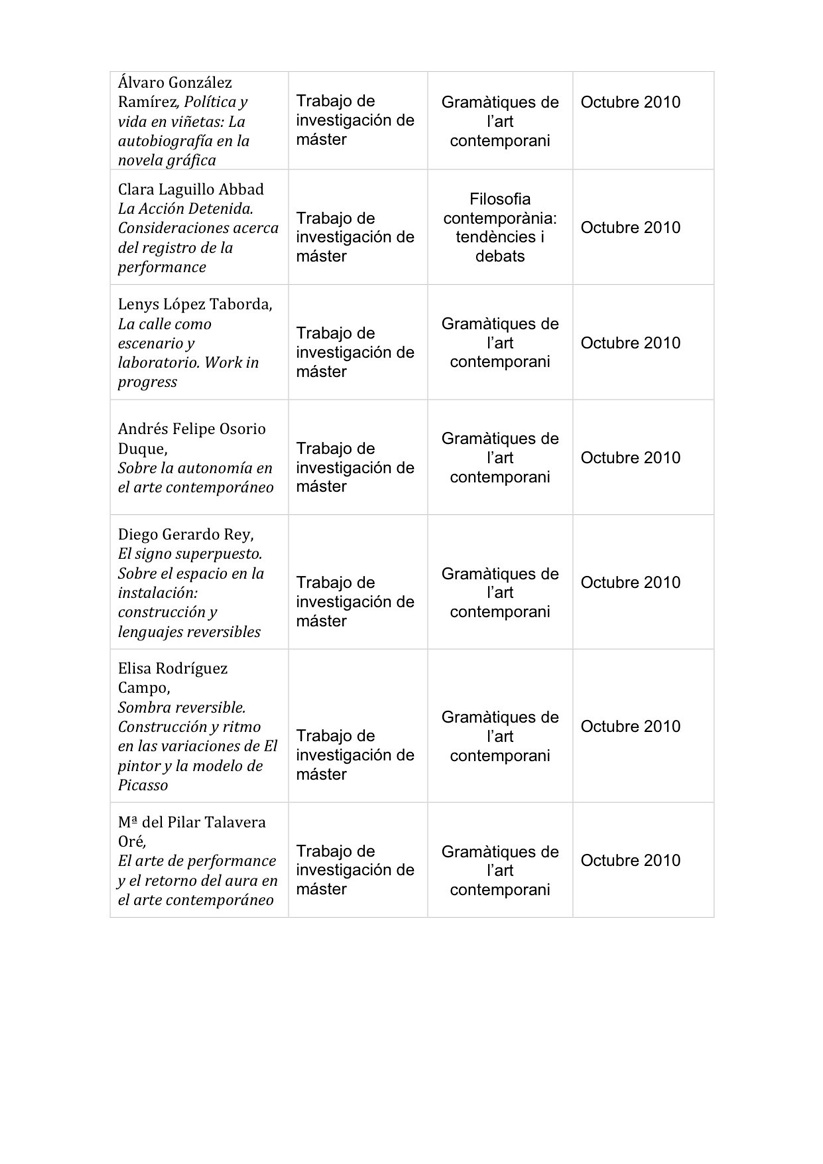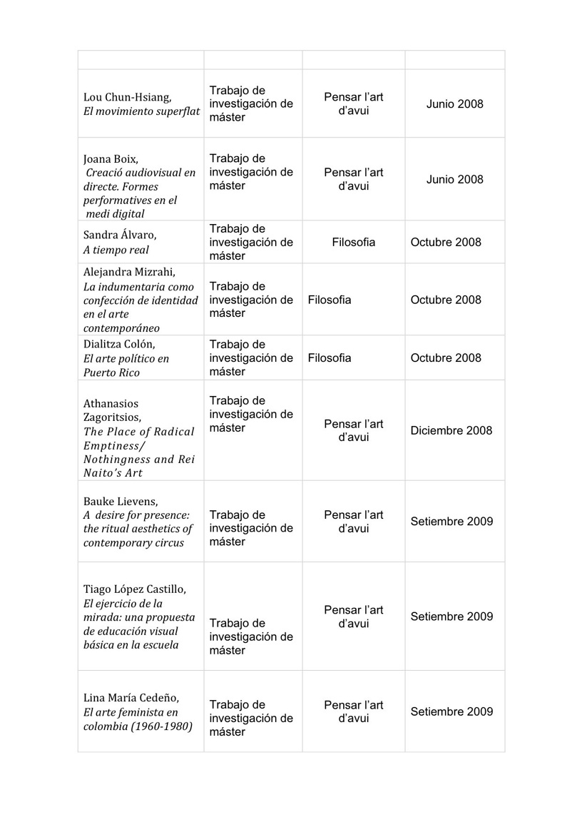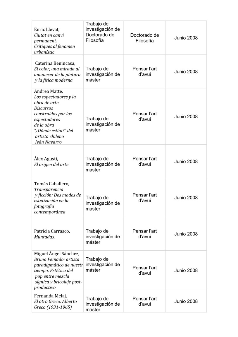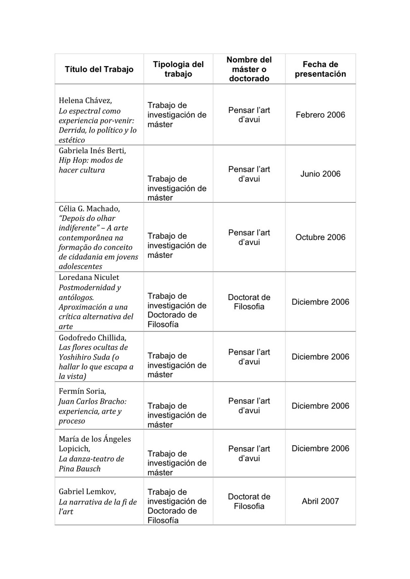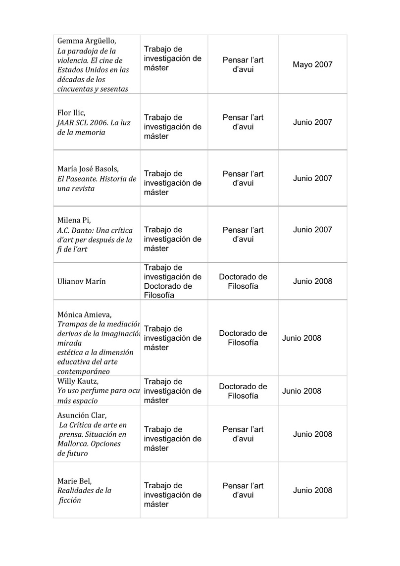 Narraciones, Conceptos y problemas en la teoría del arte contemporáneo. Fecha de lectura: 25. 11. 11. Calificación: Sobresaliente cum laude.